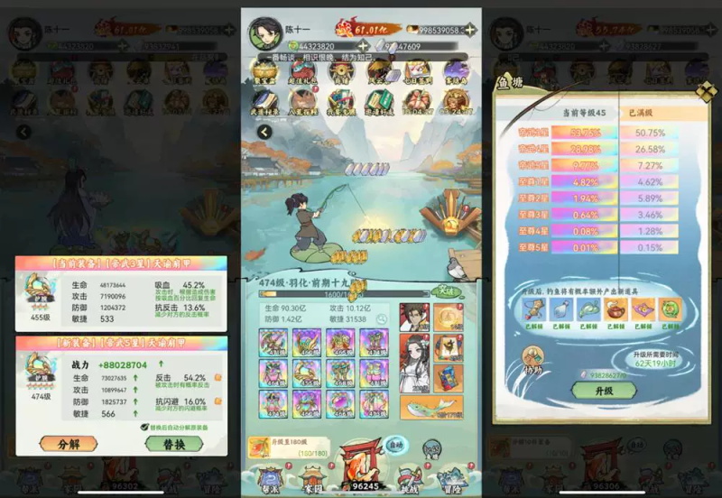 11、池塘等级扩充至100级,调整了每个品级装备出现的概率